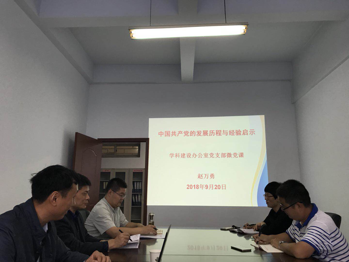 9月20日上午,在学科建设办公室会议室,学科建设办公室全体党员参加了9月份的支部专题学习,此次学习由赵万勇同志主讲,安小宇同志主持。