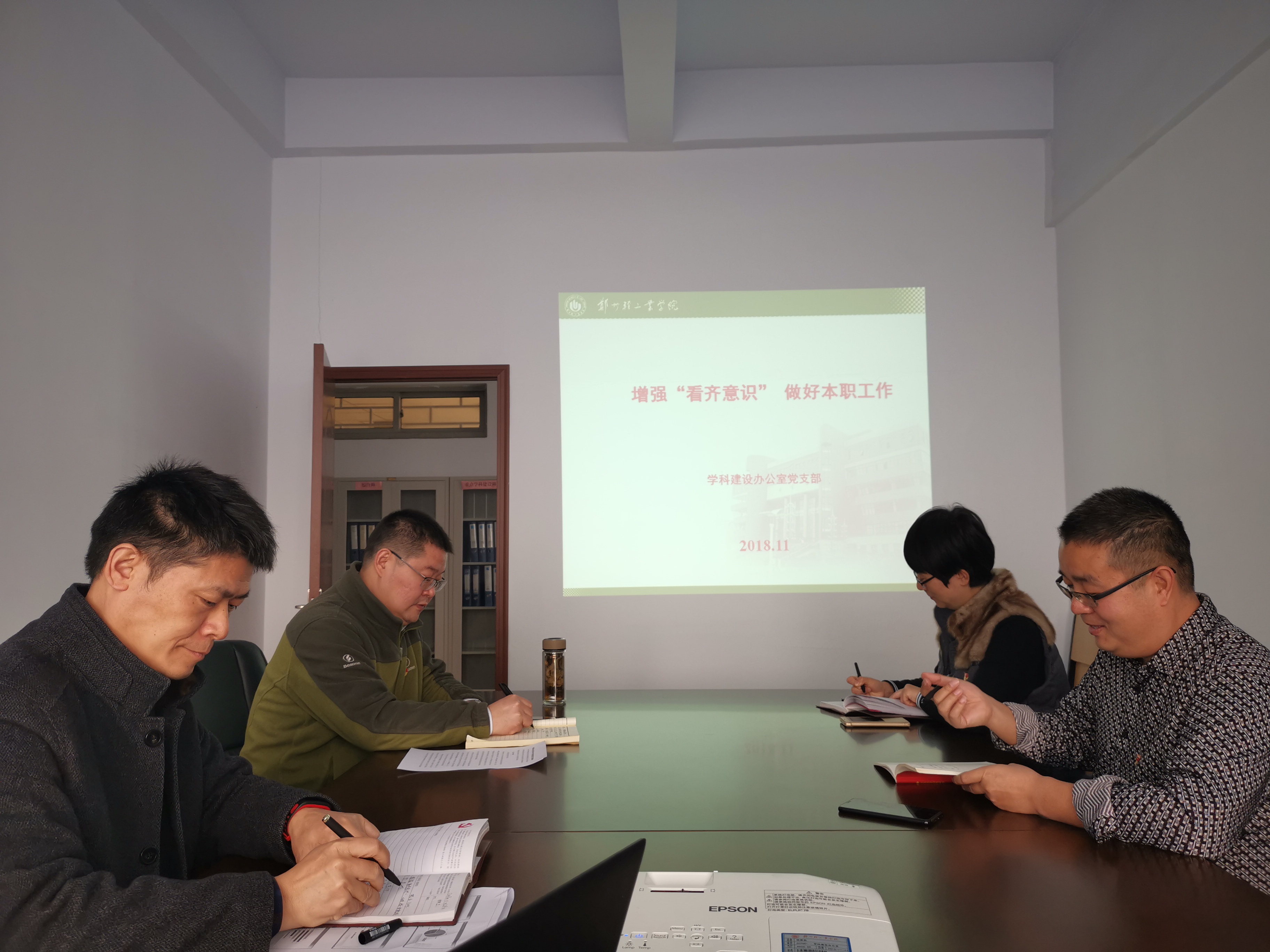 2018年11月28日上午在学科建设办公室会议室,学科建设办公室党支部召开了支部会议,支部全体党员参加了会议,会议由支部书记安小宇同志主持。会议分两个阶段进行,第一阶段为党课学习;第二阶段为支部书记抓基层党建工作述职报告。