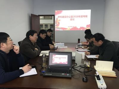 王主任首先传达了学校的文件精神,并要求大家的汇报既要突出重点,体现客观真实,又要紧密围绕学科建设办公室的更名大学和博士单位建设两大中心工作。王主任讲话结束后,学科建设办公室教工吴磊、赵万勇、毕丽华、胡怀谷按照各自负责工作,分别从更名大学材料准备和考察安排、博士单位建设、学科及团队建设、平台申报等几个方面详细汇报了自己在2018年中所开展的工作、不足、以及今后需努力的方向。