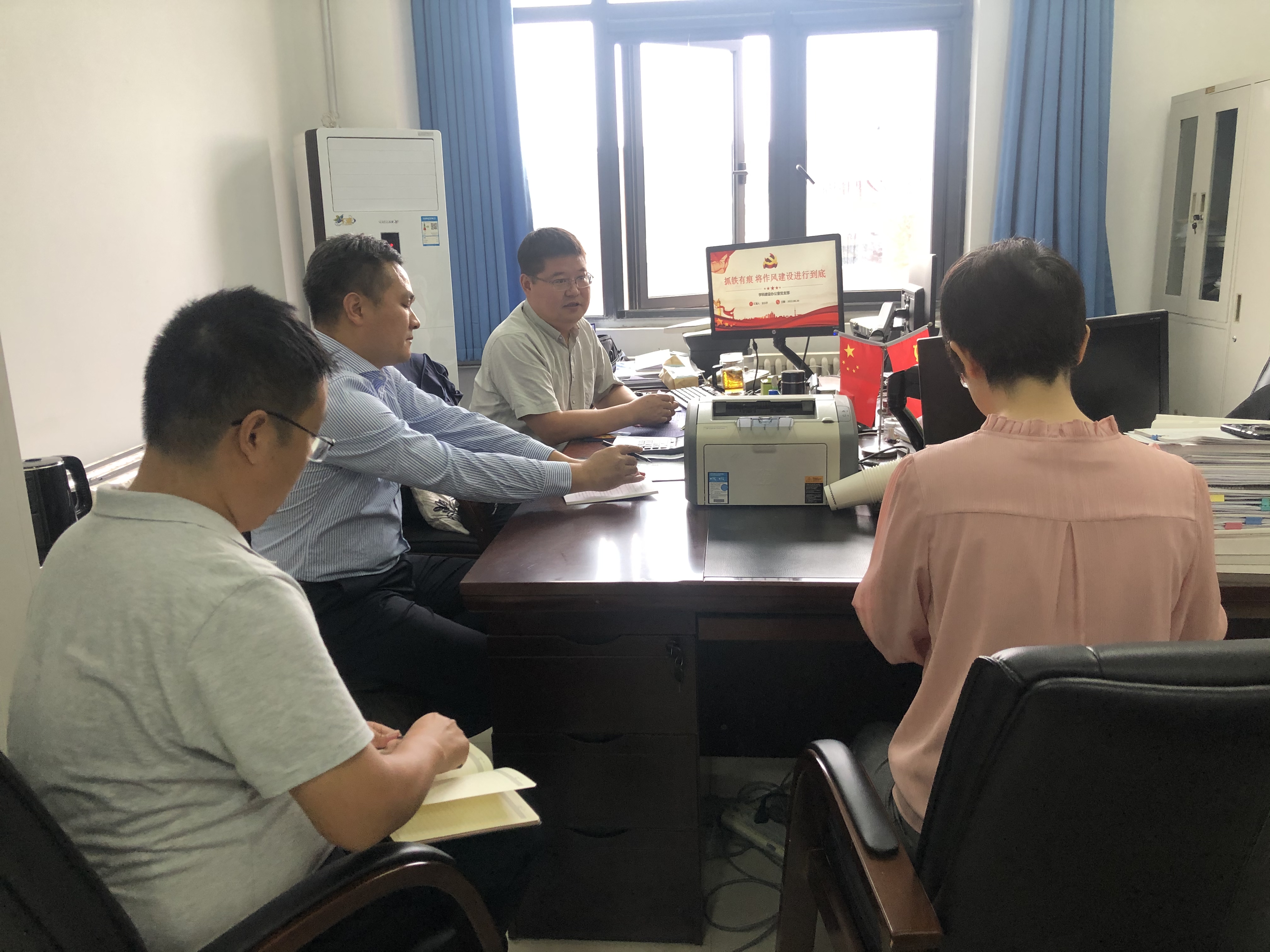 8月30日上午,学科建设办公室党支部在办公楼502召开支部会议,开展集中学习,支部书记安小宇主持学习,党支部全体成员参加。
