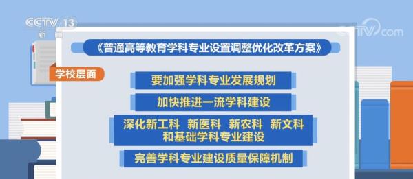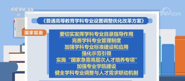 央视网消息:近日,教育部会同国家发展改革委、工业和信息化部、财政部、人力资源和社会保障部,印发《普通高等教育学科专业设置调整优化改革方案》。《改革方案》针对学科专业设置调整优化改革的三大主体,围绕学校、省级、国家三个层面提出一系列有针对性、可操作的改革措施。
