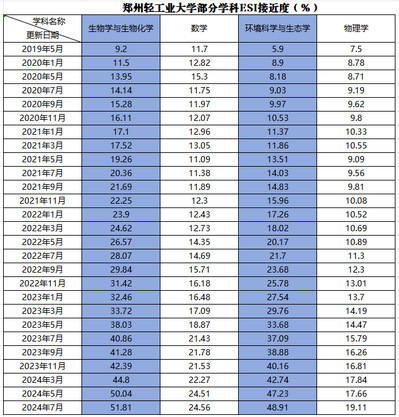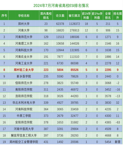 附:2024年7月份河南高校ESI排名情况